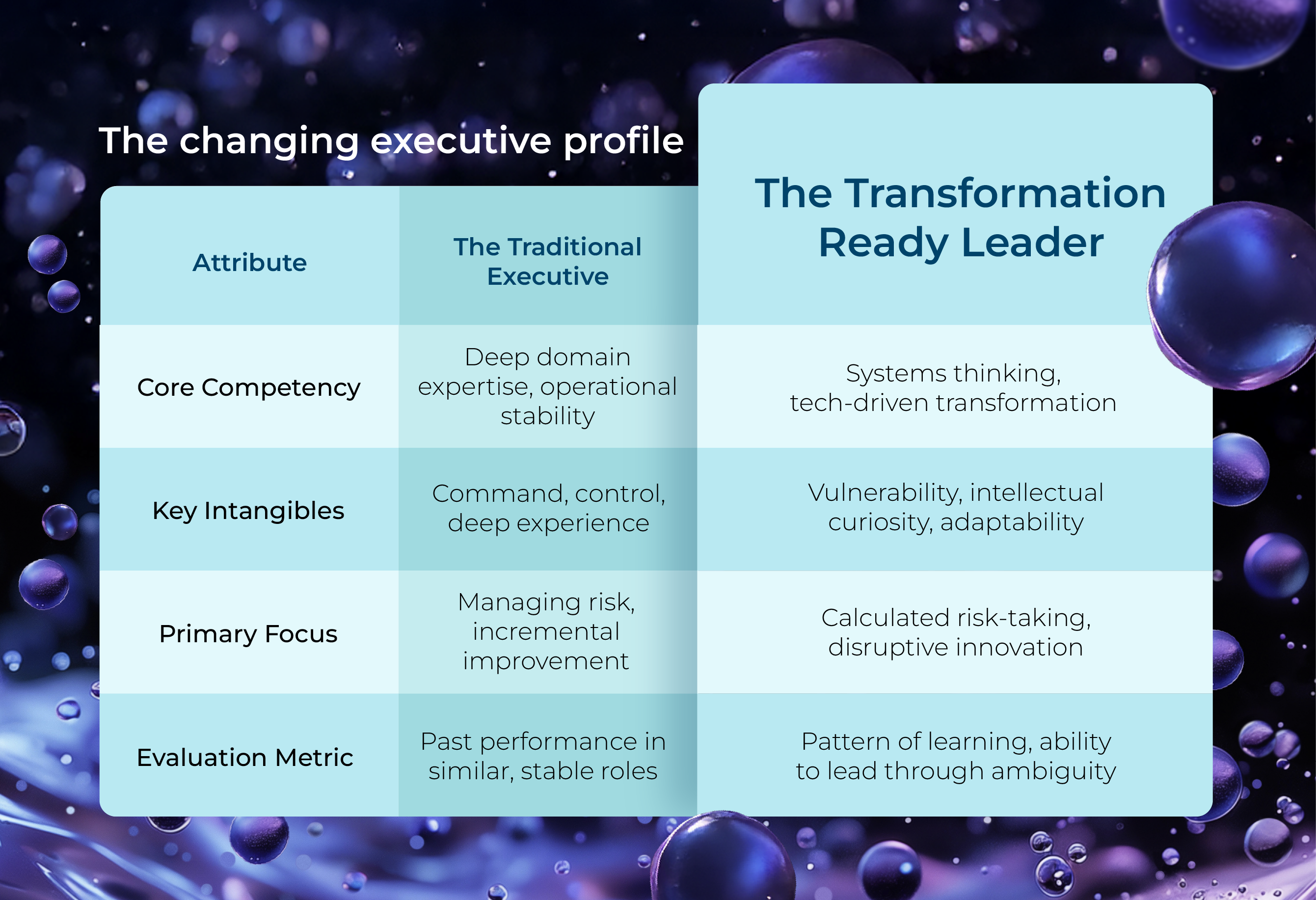 While technical expertise is essential, less tangible skills truly set apart executives ready for transformation. These are not traditional “soft skills” but mission-critical competencies for navigating an environment where there are no easy answers. Our clients repeatedly look for the following skills in new leadership candidates:
